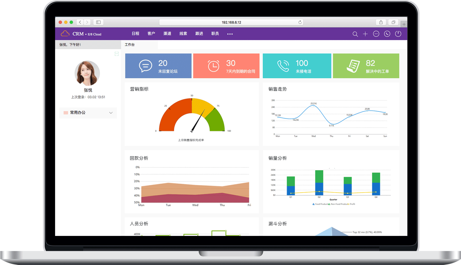 合同额指标等核心指标完成率轻松掌控,实时分析业过程中的