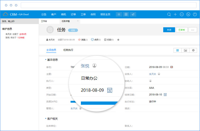 时订阅指定员工的日志、周报、月报、动态、日程及相关任务,系