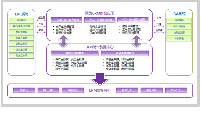 通过CRM系统实现营销及服务一体化管理,实现内部办公、客
