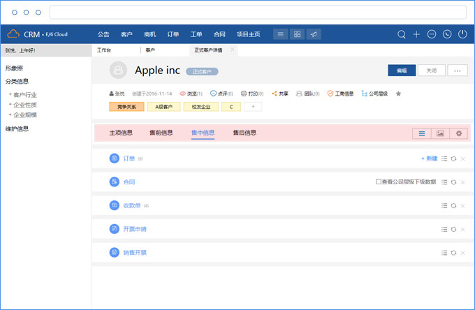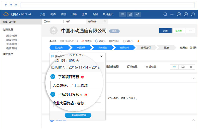 针对客户售前、售中、售后的业务数据,清晰可查。何时给客户下