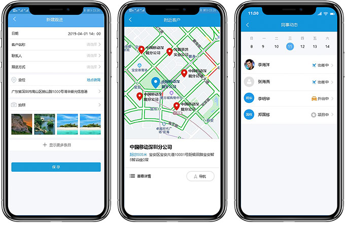 它同事了解个人动态去向。地图定位可方便业务人员拜访客户时,