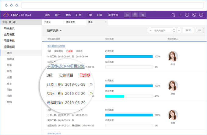 最新项目动态、全盘项目预警信息包括:项目逾期、成本超标、项