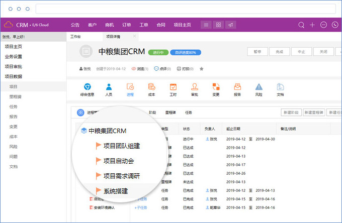 里程碑及任务进行项目过程管理,通过甘特图可以快速了解项目